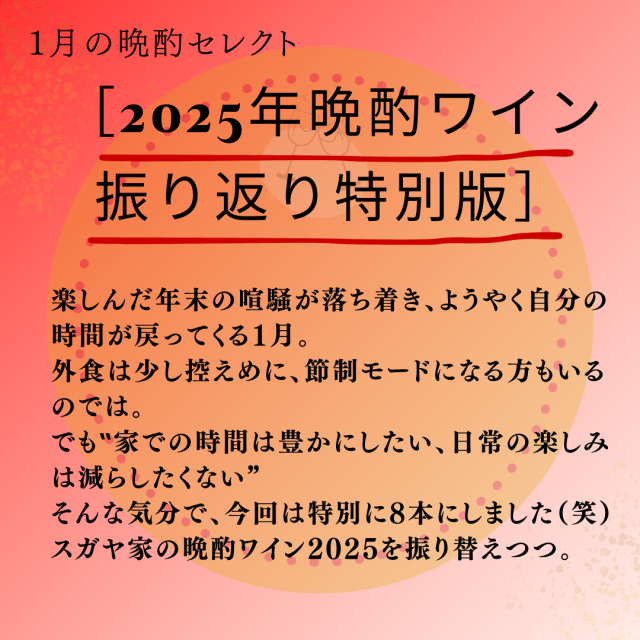 そんな気分で、スガヤ家の晩酌ワイン2025を振り替えつつ、今回は特別に8本にしました(笑)